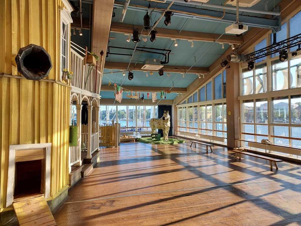 Noi ragazze ce la siamo cavata alla grande, poi; nei giorni successivi siamo state al Mercato Centrale e a camminare sull’acqua, abbiamo fatto un picnic e siamo entrate alla Kulturhuset che è un posto incantevole e solo in biblioteca, settore infanzia 0-9, si possono trascorrere ore dimenticandosi del mondo (e andare in bagno scalzi, come si usa, qui, nei posti per bambini). La piccola E., che tra le altre cose è una fan sfegatata di Pippi Calzelunghe, ci ha invitate ad andare a conoscere la sua casa e finalmente siamo state a Junibacken. Mi sono follemente innamorata del cavallo a pois e del tramonto sul profilo della città.