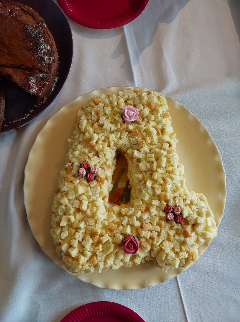 Per il compleanno di L. non avevamo una princesstårta, ma una torta mimosa stupenda, anzi due, una a forma di quattro e una in più perché siamo golosi, regalo entrambe di nonna A. (e nonno T., che anche per le torte fa calcoli di portata e struttura).